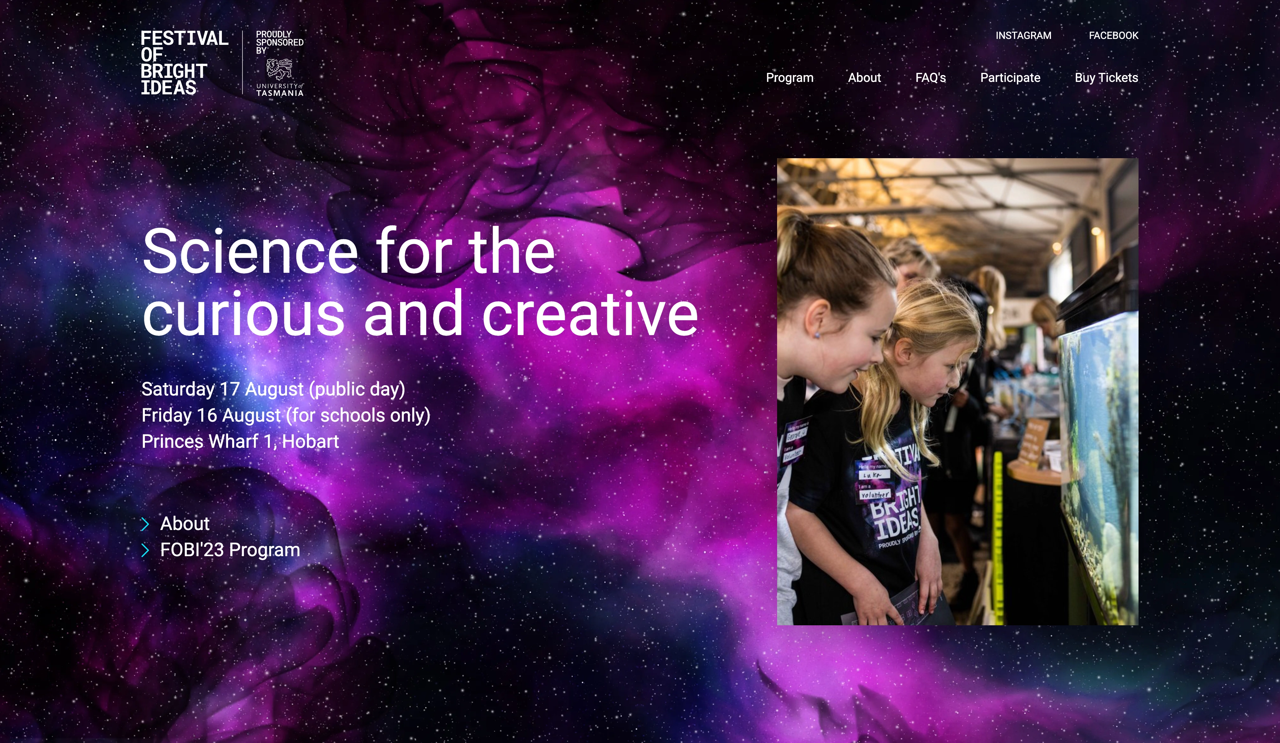 It was important that the brand be functional in a range of formats and be engaging to kids, families, and school groups. We focused strongly on a fun and dynamic tone, portraying a sense of wonder and awe. We enjoy the ongoing opportunity to create a strong brand for the festival, making sure the vision and core qualities of FoBI are communicated in a memorable way.